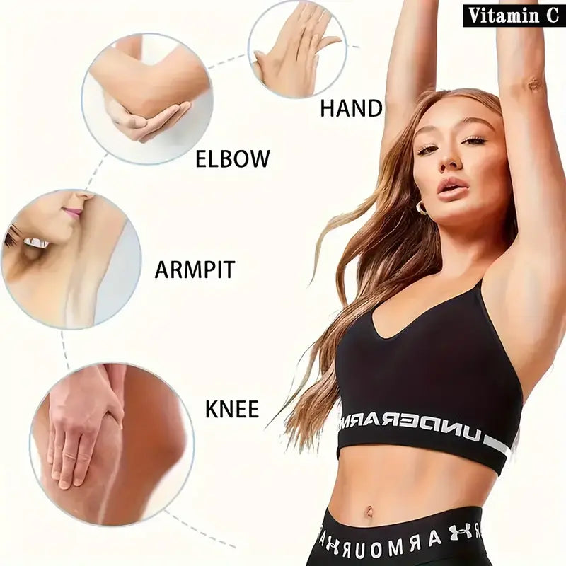 Experience luminous, healthy-looking skin with this moisturizing body cream, infused with Vitamin C, Retinol, and Aloe Vera. Designed for all skin types, it targets uneven skin tone, dryness, and dullness—especially in delicate areas like underarms and inner thighs. Alcohol-free and lightweight, it absorbs quickly, leaving your skin soft, smooth, and visibly brighter.