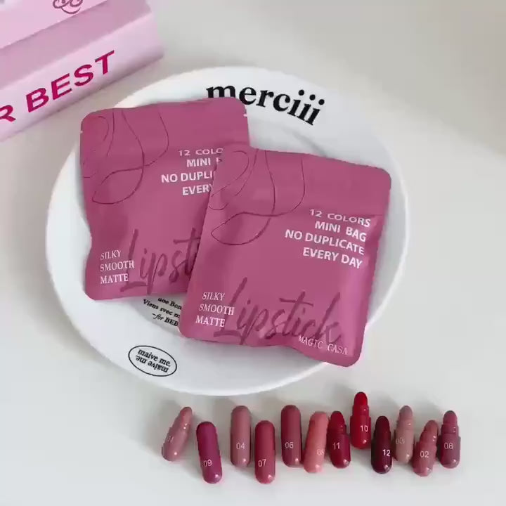 💄 مجموعة أحمر شفاه صغيرة غير لامعة مكونة من 12 قطعة