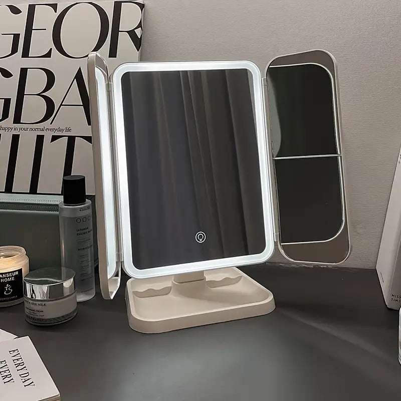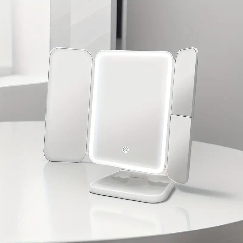 استمتعي بمكياج مثالي في كل مرة مع هذه المرآة الذكية الأنيقة عالية الدقة بتقنية LED. مصممة بنظام دوران متعدد الزوايا، تضمن إضاءة مثالية ورؤية مثالية من أي زاوية. تضفي اللوحة الخلفية الأنيقة وفتحة التخزين المدمجة لمسة فاخرة وعملية، مثالية لغرف النوم، أو السفر، أو حتى لطاولات المكياج.